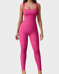 Ribbed Square Neck Sleeveless Workout Jumpsuit
